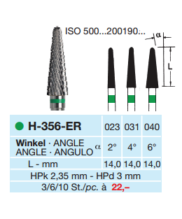Konusfräser, Kreuzverzahnung, fein Inh.3St.2º-4º-6º 2,35 Schaft