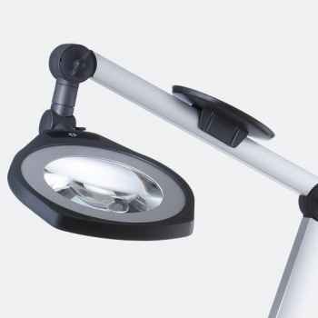 LED Lupenleuchte mit Gelenkarm, Daylight white, dimmbar, IP40, Anschluss 24V DC, vergütete Glaslinse 3,5 dpt mit zusätzl. Bifokal 8 dpt,, Lieferung mit Tischklemme, Linsenabdeckung und Netzteil 110-240V AC zu Festspannung 24V DC.