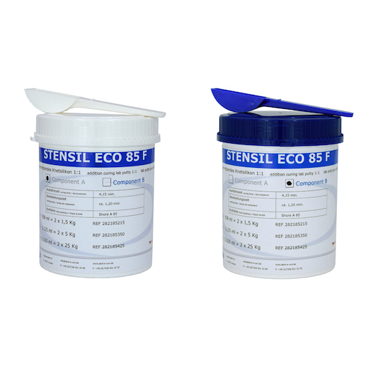 Dieses additionsvernetzende 1:1-Silikon ist einfach und sicher zu dosieren und ermöglicht eine sehr detailgetreue Abformung. Es lässt sich geschmeidig ankneten und erzielt ein homogenes Ergebnis. Die glatte Oberfläche lässt sich anschließend leicht beschneiden. Dank der sehr niedrigen Dichte und des hohen Reinheitsgrades wird das höchste Volumen erreicht. STENSIL ist physiologisch unbedenklich (Platinhärter). Es eignet sich zur Herstellung von Kontrollbissen, Vorwällen, Modellen bei Prothesenreparaturen, Ausblockungen, Isolierung von Zähnen, etc.