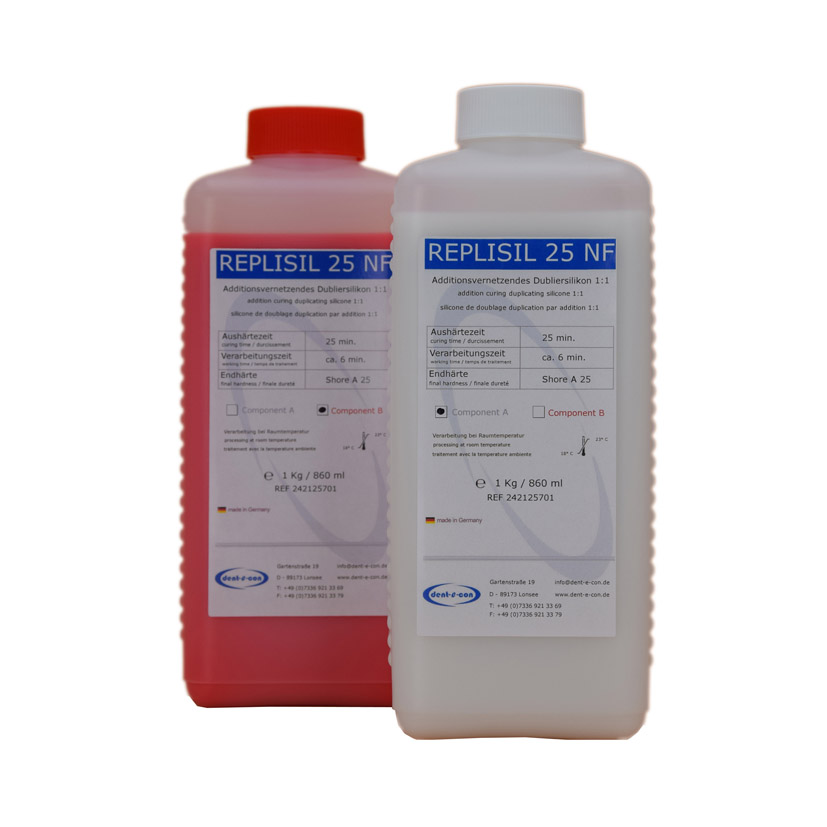 Hartes Dubliersilikon in der Shorehärte A 25. Geeignet für freies Dublieren, beispielsweise mit einer Manschette. Dieses Silikon enthält einen geringen Anteil an zusätzlichen Füllstoffen und weist sehr hohe technische Werte auf. Bei hoher Reißfestigkeit sehr flexibel und daher leicht entformbar. 100%ige Rückstellung, schrumpfungsfrei und dimensionsgenau.