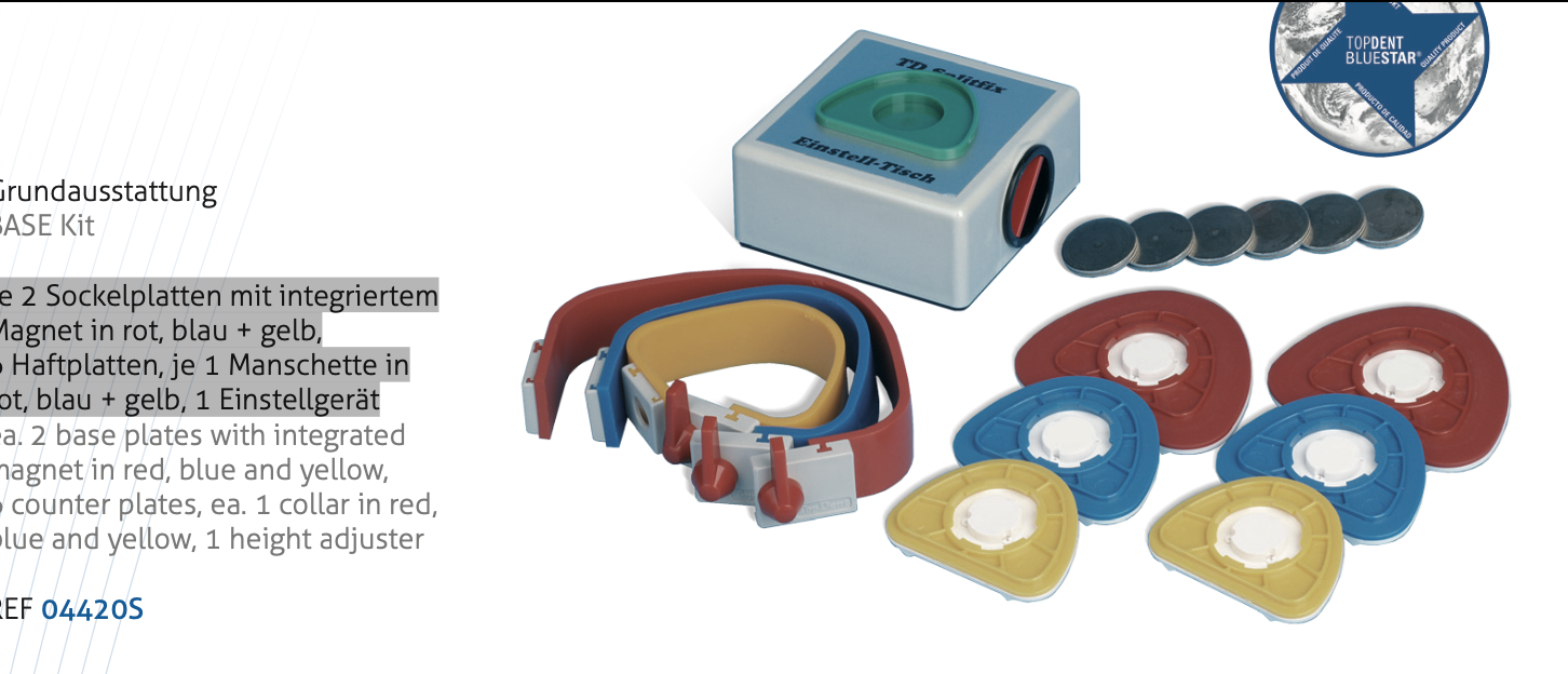 6 Haftplatten, je 1 Manschette in rot, blau + gelb, 1 Einstellgerät